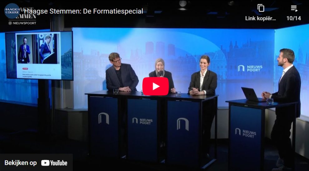 In Haagse Stemmen: de formatiespecial duiken Lamyae Aharouay, Joost Vullings en Marieke van de Zilver in het spel van de formatie. Kunnen de hoofdrolspelers nog door een deur? Welke struikelblokken liggen in het verschiet? En zolang de formatie loopt staat heel politiek Den Haag in de wachtstand. Alleen draait de wereld wel gewoon door. Hoe geven de nieuwe Tweede Kamer en het demissionaire kabinet leiding in deze turbulente tijden?