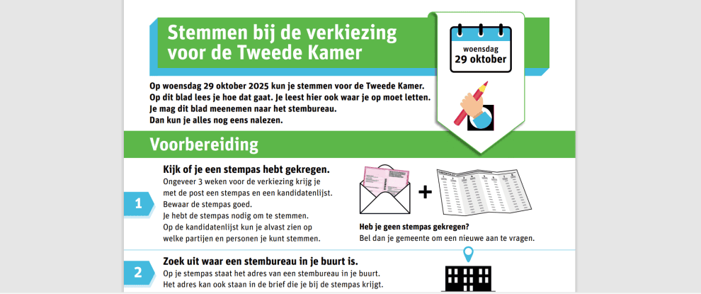 De handreiking neemt stap voor stap het verkiezingsproces door, van de voorbereiding tot aan het bezoek aan het stembureau zelf. We gebruiken eenvoudige zinnen en heldere illustraties.
