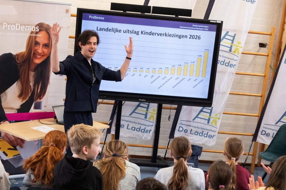 In aanloop naar de gemeenteraadsverkiezingen hebben ruim 4400 leerlingen van 175 aangemelde basisscholen, verspreid door heel Nederland, hun stem uitgebracht tijdens de landelijke Kinderverkiezingen. Deze verkiezingen, georganiseerd door ProDemos, laten kinderen op jonge leeftijd oefenen en ervaren hoe verkiezingen werken. De landelijke uitslag werd vandaag gepresenteerd op basisschool De Ladder in Maarn, waar kinderen ’s ochtends zelf ook naar de stembus gingen.