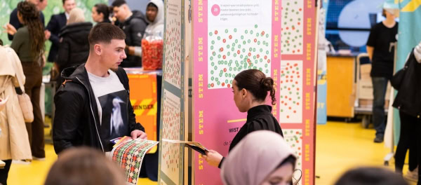 StickerStemWijzer is de fysieke versie van de StemWijzer: op grote panelen staan 30 stellingen. Bezoekers krijgen een stickervel met groene (‘eens’) en rode (oneens) stickers die ze bij de stellingen kunnen plakken. Aan het eind laten ze hun stickervel scannen en krijgen ze hun StemWijzeruitslag.
