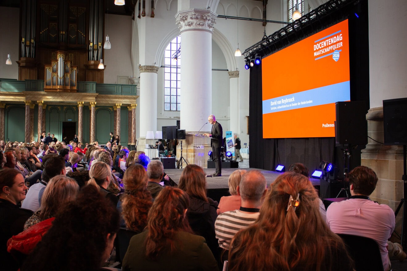 David van Reybrouck, cultuurhistoricus, schrijver en Denker der Nederlanden, verzorgde de hoofdlezing van de Docentendag Maatschappijleer 2026. Van Reybrouck pleit dat ons democratische systeem aan vernieuwing toe is. Immers: wat is ons antwoord op een wereld waarin het aantal democratische landen daalt? En wat zegt de wereld van vandaag over de taak van de docent Maatschappijleer en Burgerschap?